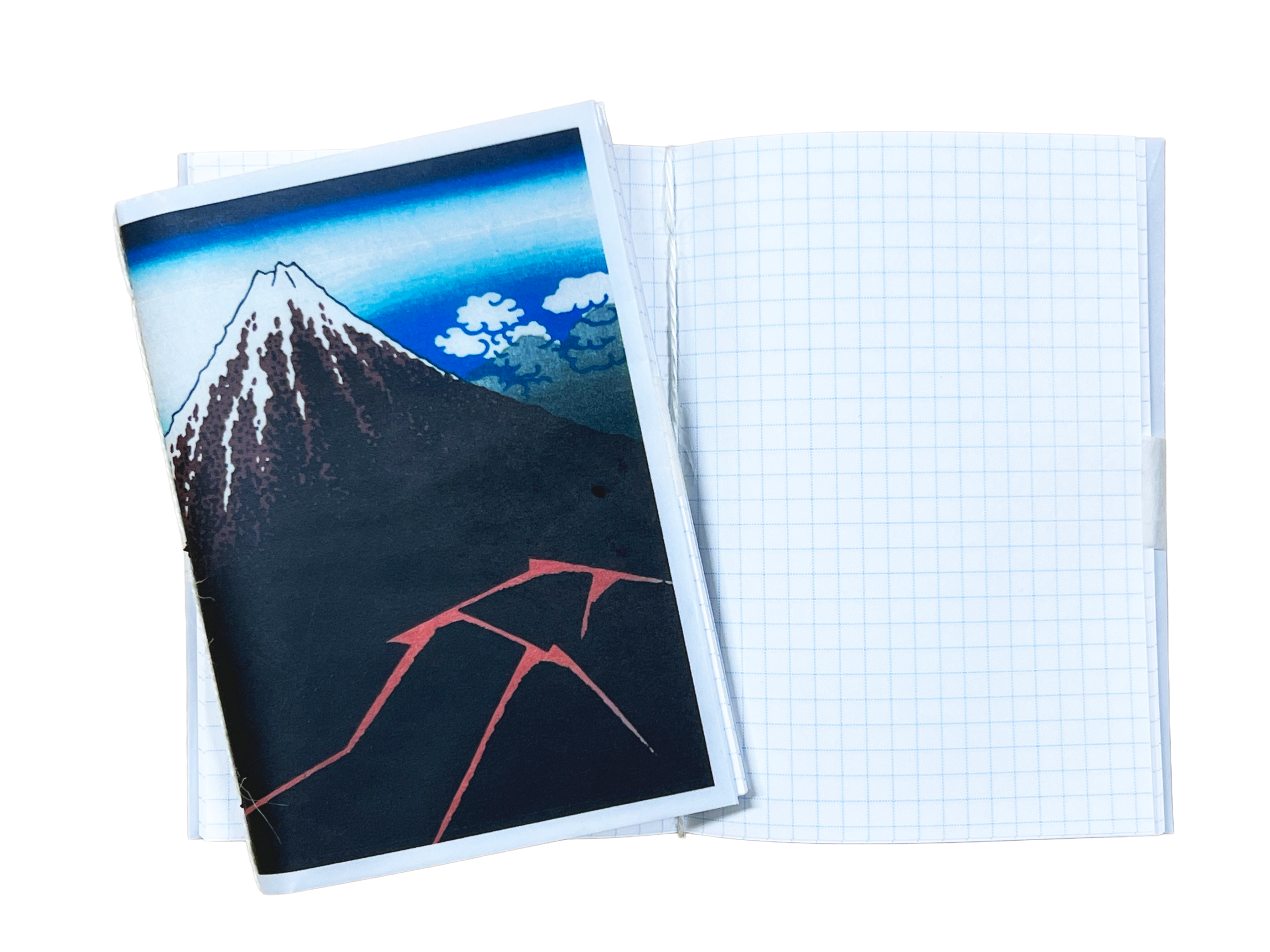 This is a mini waxed notebook finished with a traditional wax coating and printed with designs from Thirty-Six Views of Mount Fuji.